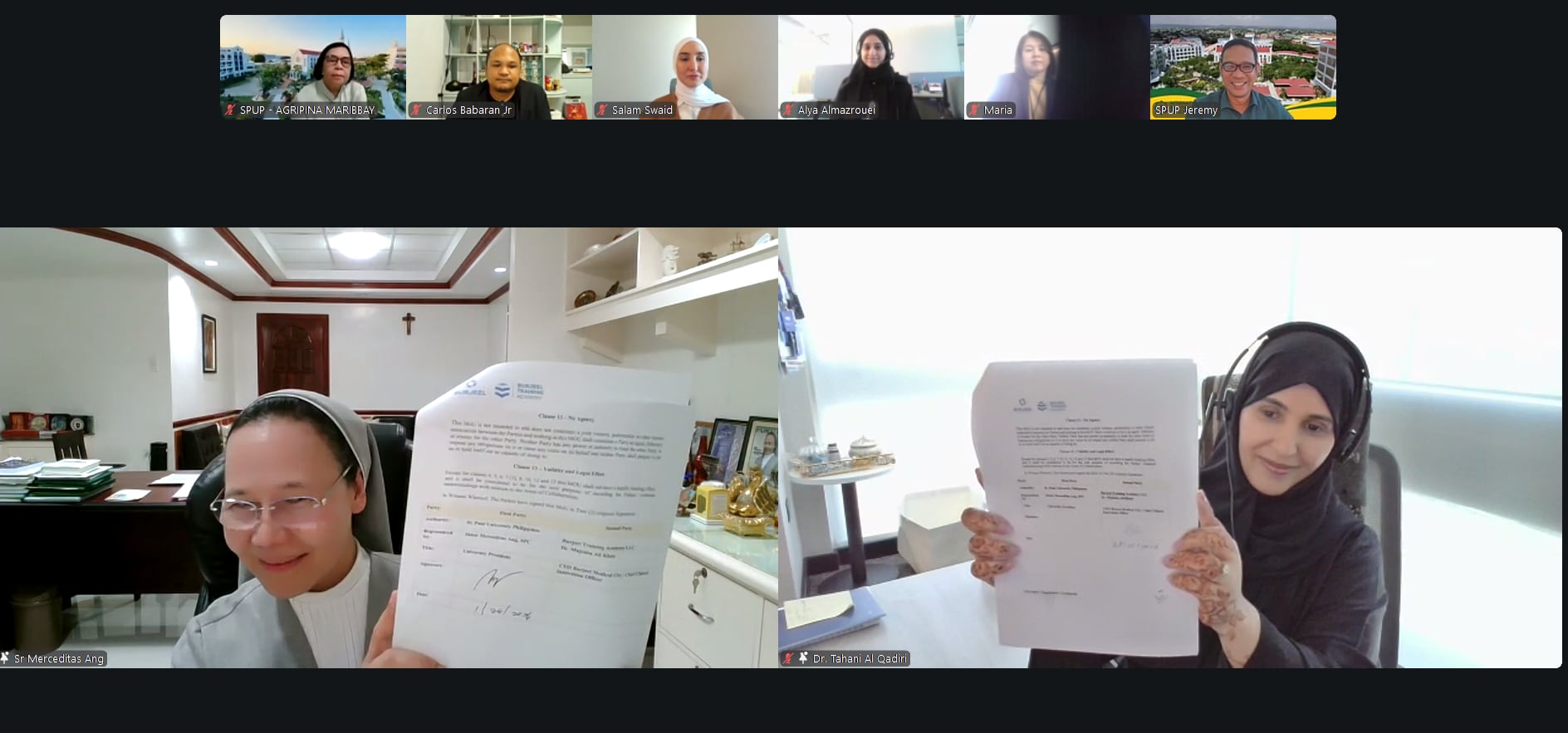 St. Paul University Philippines (SPUP) and Burjeel Training Academy, a company of Burjeel Holdings in the United Arab Emirates (UAE), have formally solidified their partnership through the signing of a Memorandum of Understanding (MOU). The agreement was signed by Dr. Tahani Al Qadiri, Group Director of Academic Affairs – Burjeel Holdings, and Sr. Merceditas Ang, SPC, representing SPUP, marking a significant milestone in advancing international academic and training collaboration.